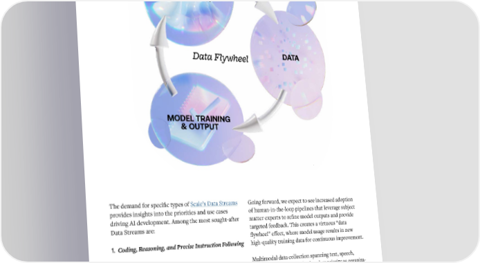 One new notable trend is the acquisition of proprietary By fusing diverse input modalities and investing in hu- data from platforms like Reddit, as exemplified by the man-in-the-loop pipelines, models can develop richer, recent multi-year data partnership between Reddit and more contextual representations that mirror how HUMAN Google. This deal, reportedly valued at $60 million humans process information and engage with their en- FEEDBACK per year, emphasizes the value placed on unique, hu- vironments. Organizations that can effectively harness man-generated content for training the next generation multimodal data and scale their labeling capabilities of models. will be well-positioned to unlock new frontiers in AI. However, simply acquiring vast amounts of data is not enough. To truly stay ahead of the curve, organizations must also invest in robust human-in-the-loop (HITL) DATA pipelines that can process and label data across an Data Flywheel ever-expanding range of modalities. As AI systems become more sophisticated, they will require not just text, but also speech, images, video, and even more complex data types like 3D scenes and sensor data. Moreover, the rise of reinforcement learning from human feedback (RLHF) has fundamentally changed MODEL TRAINING how models are evaluated. RLHF requires “on-policy” & OUTPUT human supervision, where human raters provide feedback on the actual outputs generated by the model during the training process. Additionally, traditional evaluation methods that rely on fixed sets of labels are no longer sufficient. Instead, organizations must conduct side-by-side comparisons of their old and new model responses across a large number of prompts before each release. This approach captures the nuances and edge cases that emerge as The demand for specific types of Scale’s Data Streams Going forward, we expect to see increased adoption models become more sophisticated and ensures that provides insights into the priorities and use cases of human-in-the-loop pipelines that leverage subject improvements are aligned with user expectations. driving AI development. Among the most sought-after matter experts to refine model outputs and provide Data Streams are: targeted feedback. This creates a virtuous “data Building scalable labeling programs that address mul- flywheel” effect, where model usage results in new timodal capabilities is a critical challenge for model 1. Coding, Reasoning, and Precise Instruction Following high-quality training data for continuous improvement. builders. It will require a combination of advanced tooling, specialized annotator training, and close 2. Languages Multimodal data collection spanning text, speech, collaboration between domain experts and machine images, and video will also be a key priority as organiza- learning teams. Managed labeling services with 3. Multimodal Data tions seek to build AI systems that can perceive, reason expertise across a wide range of modalities will be and interact more naturally. increasingly sought after to help organizations navigate this complex landscape. 34 35